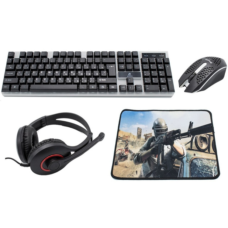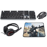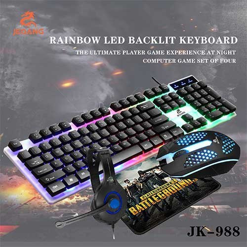 Wired gaming keyboard and mouse set with mouse pad and JEQANG JK-988 headset